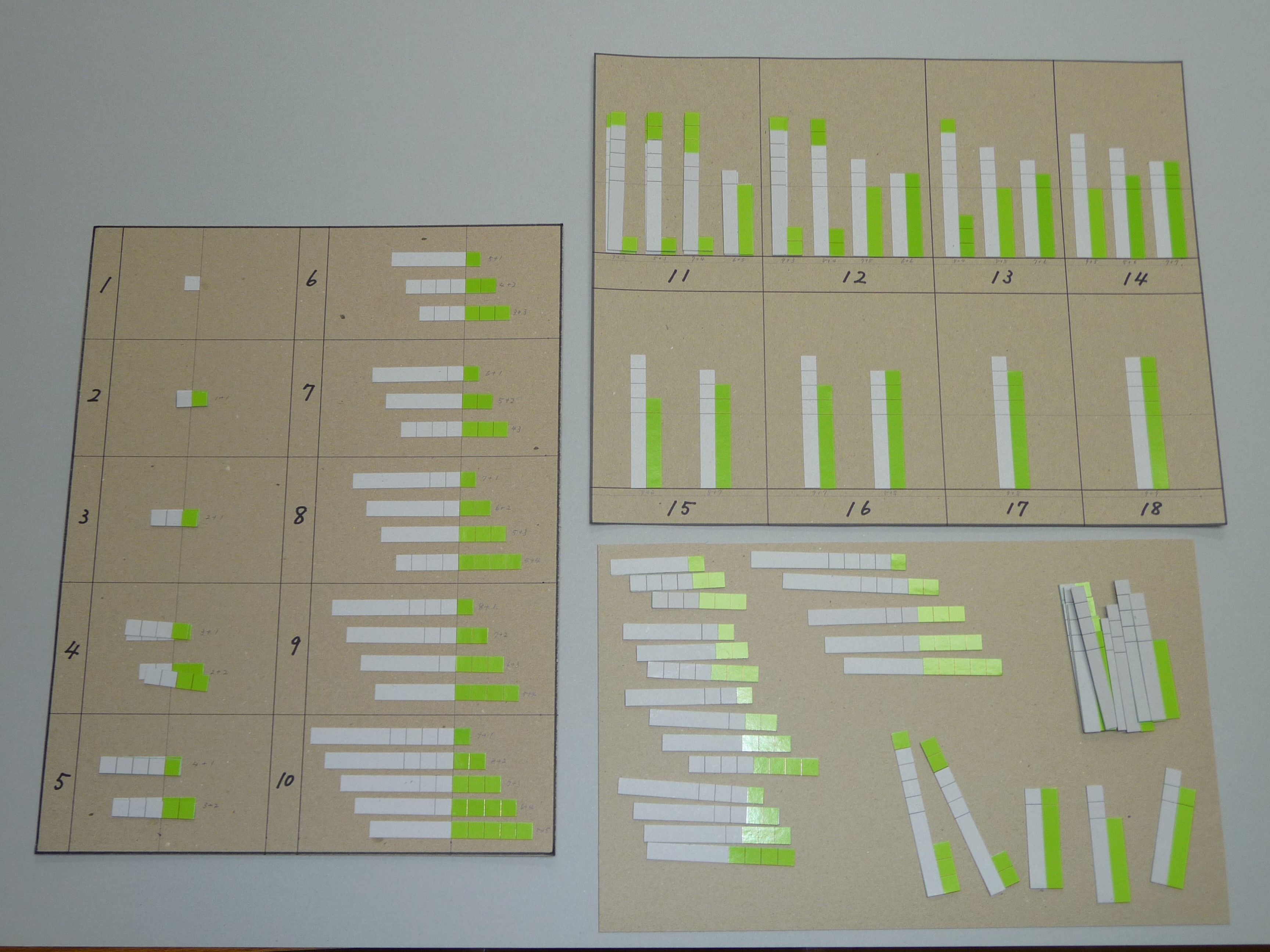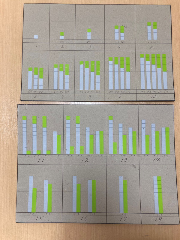 10までの足し算九九・11~18の足し算九九タイル表