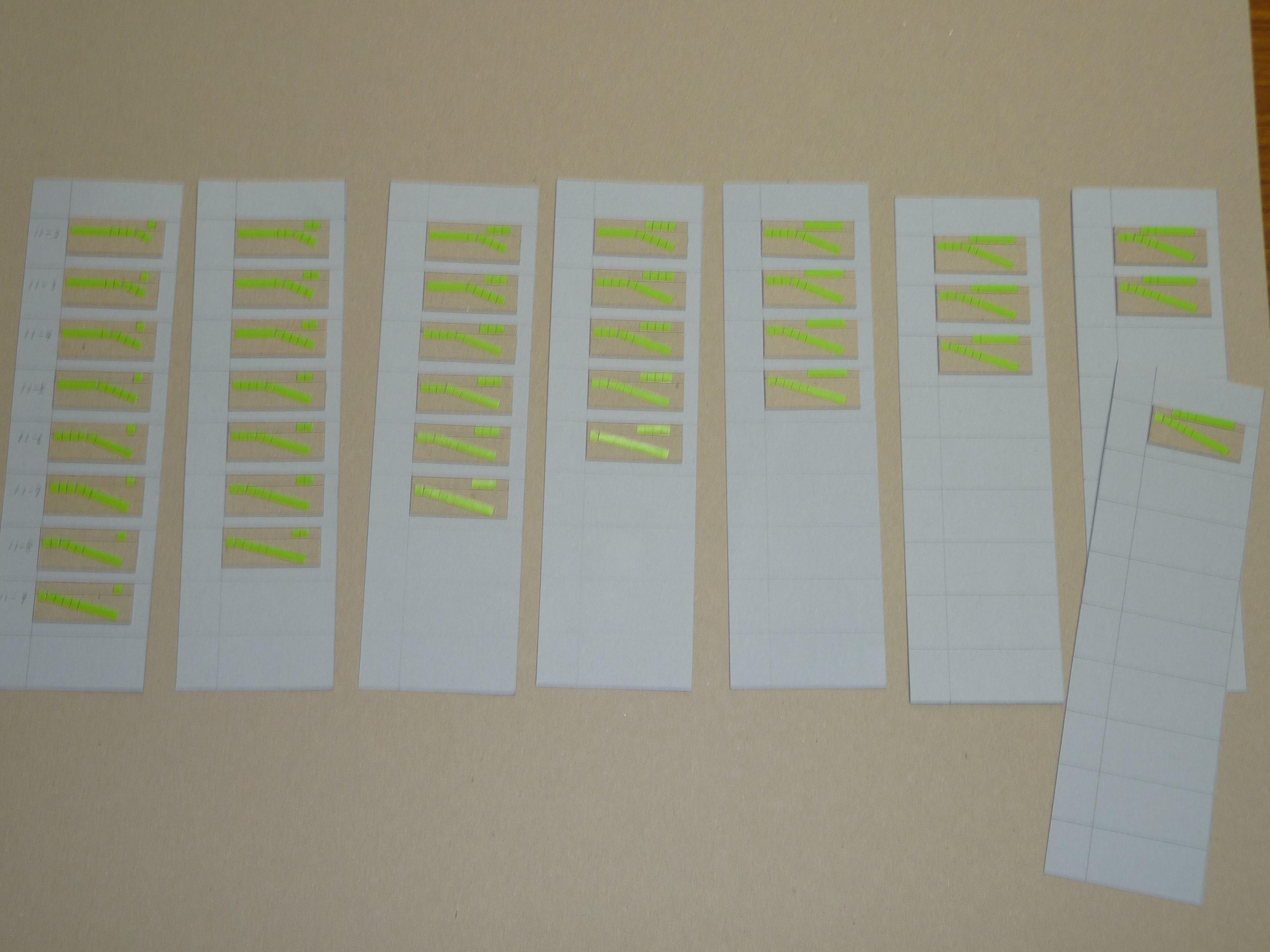 10までの引き算九九・11~18の引き算九九タイル表
